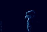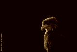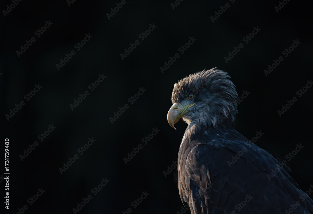 Side view portrait of osprey in wildlife. Dark background is ready for your use. Horizontally.