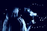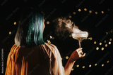 Beautiful Woman With Blue Dyed Hair And In Holiday Outfit Celebrating Wedding