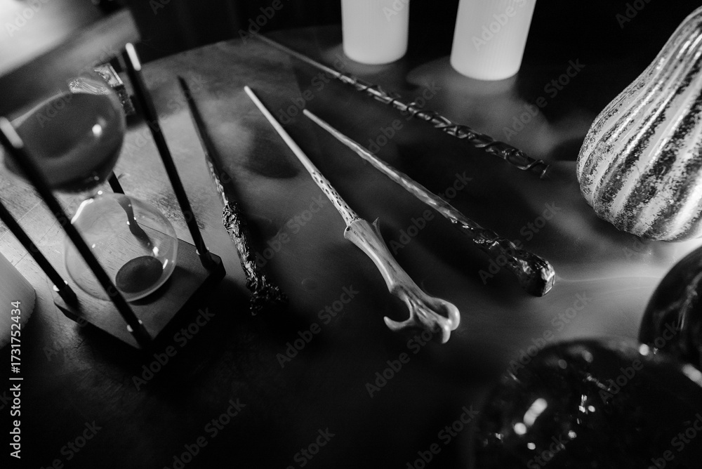 Fairytale Miracle Table With Wizard Symbols - Wand, Hourglass, Magic Crystals