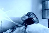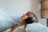 Woman listening to music on sofa remix