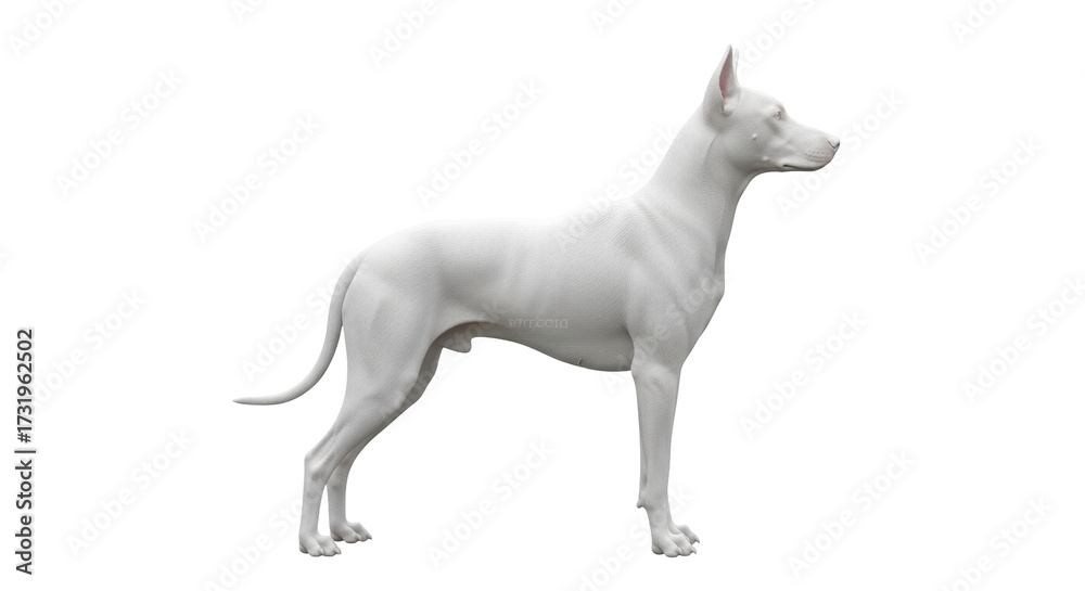 Isolated canine breed rendering with pointy ears stands attentively and focused outdoors