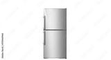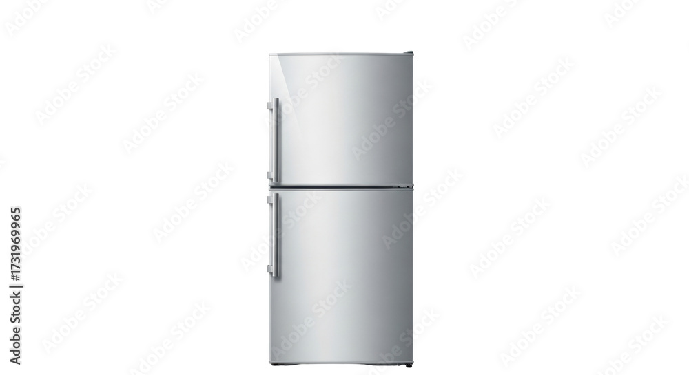 Isolated refrigerator with two doors, freezer and fridge is stainless steel color