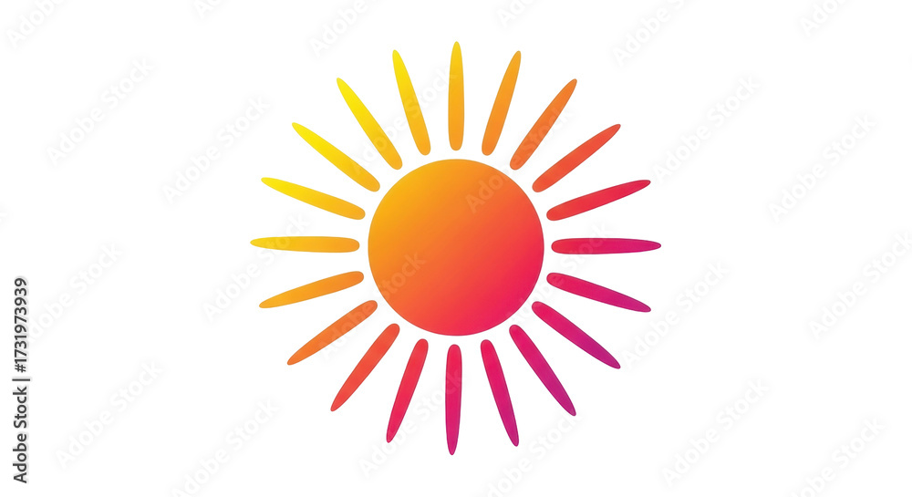 Isolated Summer sunshine icon of gradient orange and yellow color, glowing hot sun rays