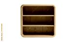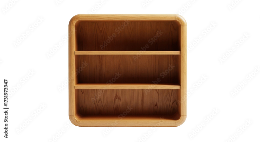 Isolated modern wooden shelving unit interior display with three open storage areas