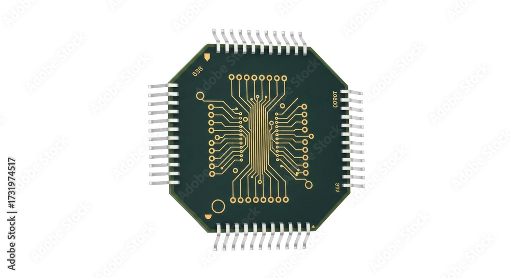 Isolated semiconductor chip microelectronics circuit board microchip electronic component, no background