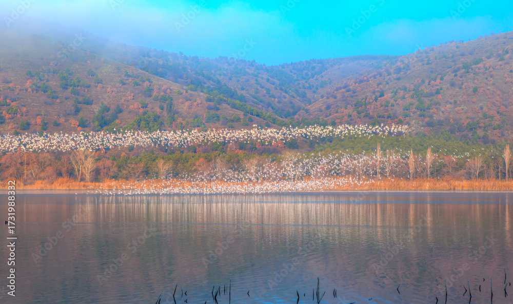 Autumn reflections on a calm lake - Eymir Lake - Ankara