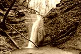 Tenginsky waterfall in the gorge close-up. Beauty in nature.