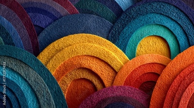 Layered Multicolored Felt Semicircular Shapes in Vibrant Rainbow Palette with Textured 3D Effect for Decorative Background and Modern Design Projects