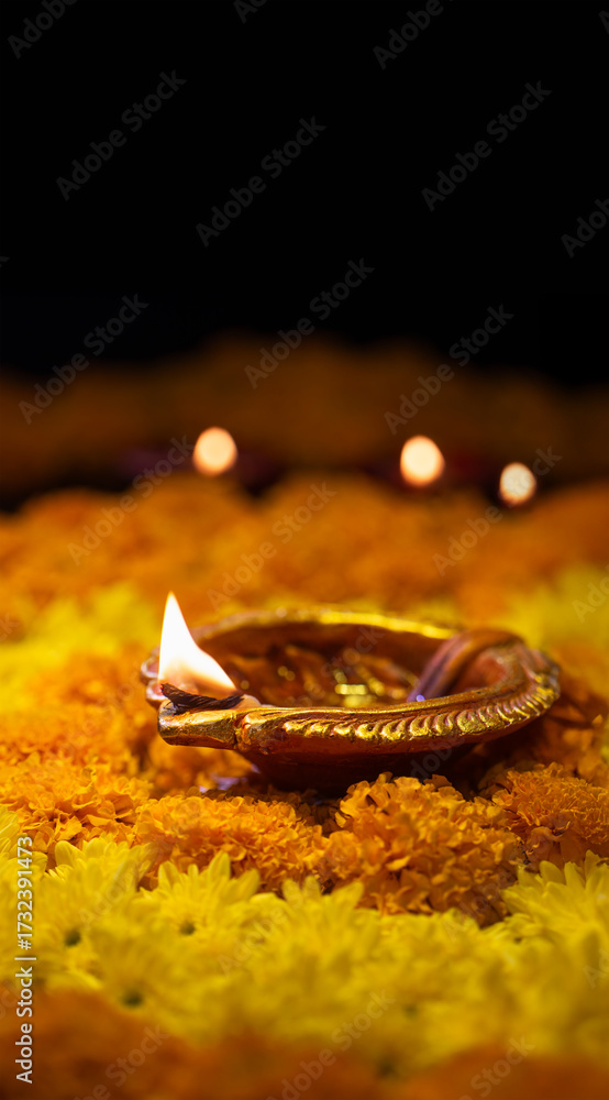 Clay diya lamps lit during diwali celebration, Diwali, or Deepavali, is India's biggest and most important holiday.