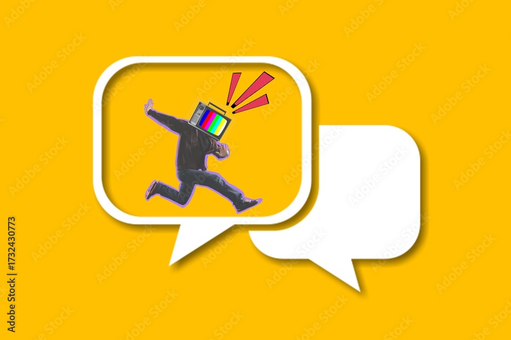 Modern art collage person headed of old TV set