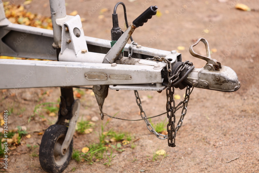 A close-up view of a trailer with a chain attached, suitable for use in illustrations about transportation, security, or industrial settings