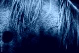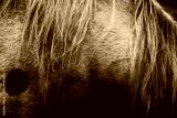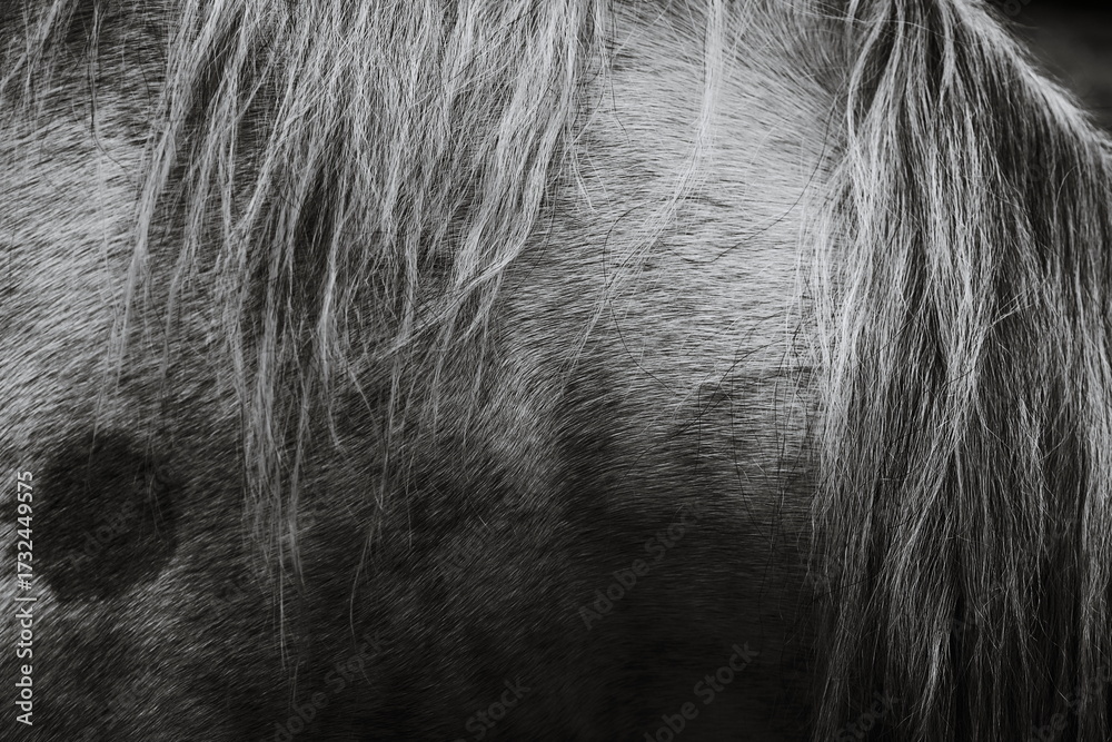 A classic black and white photograph of a horse
