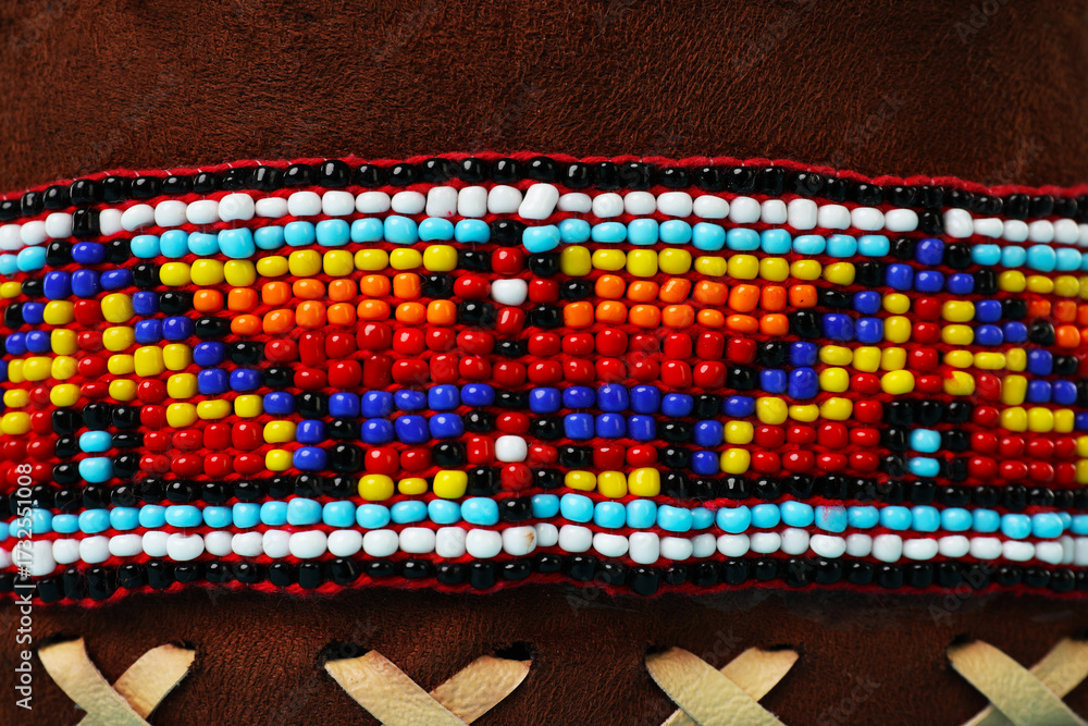 Traditional warbonnet (Native American chief headdress) as background, closeup