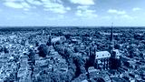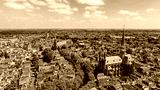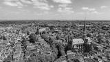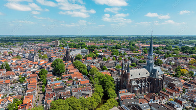 Aerial with the St. Jans church, the Gouwe church and the city hall in Gouda the Netherlands