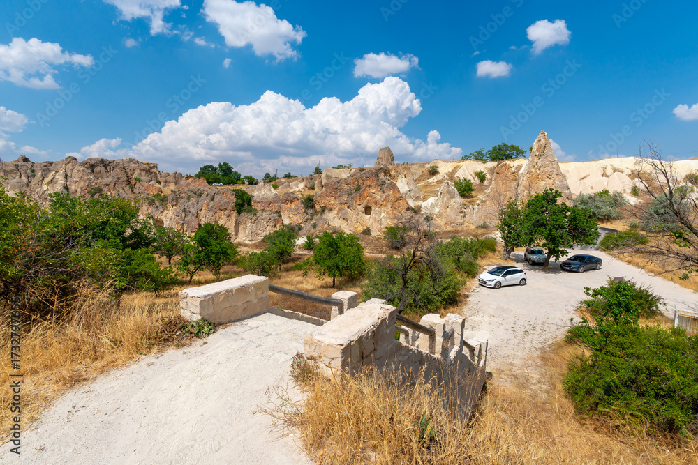 Volcanic rock formations landscape in Cappadocia, place of residence of ancient Christians