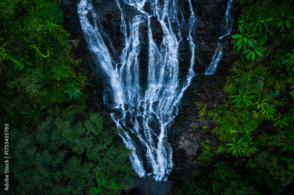 Kerala nature beauty, aerial view of natural waterfall surrounded by greenery