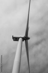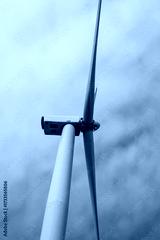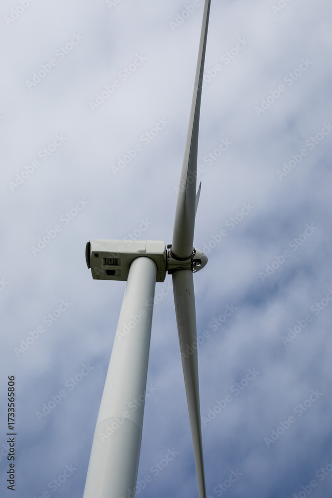 Towering wind turbine pierces sky, embracing renewable whispers of Gaia's breath; Earth Day tribute, Siete Dolores April 5 2025, Barcelona, Spain