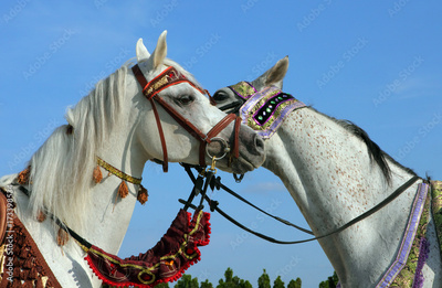 Pair Arabian Horse. Two mares head to head, sniffing at each other