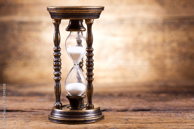 old hourglass on a wooden background