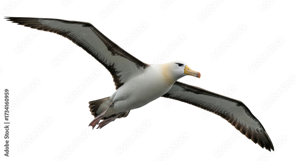 Isolated Albatross in flight, close-up of an elegant sea bird gliding, majestic wildlife shot