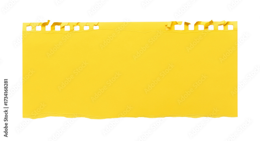 Isolated yellow piece of paper torn from a notebook ready for design, message, or note