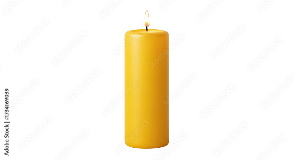Isolated yellow candle with a burning flame ready to be used in a variety of ways in projects