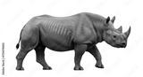Isolated rhinoceros standing, mammal with horn on nose, African wildlife animal