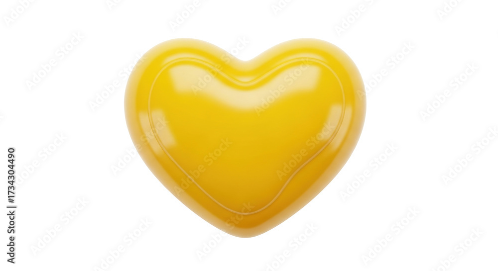 Isolated shiny yellow heart. Symbol of love, romantic relationship. 3D object on no background