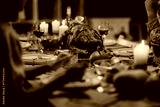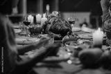 Family celebrating thanksgiving enjoying roasted turkey dinner at home