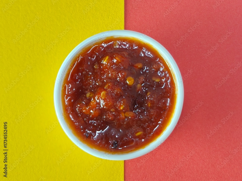 Close-Up of Spicy Red Chili Sauce. Sambal belacan