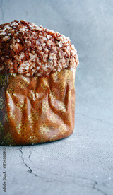 Traditional Artisan Panettone, freshly baked sweet bread with raisins and fruits, Classic style Italian Christmas Cake and New Year dessert