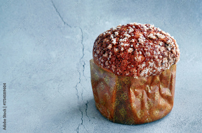 Traditional Artisan Panettone, freshly baked sweet bread with raisins and fruits, Classic style Italian Christmas Cake and New Year dessert