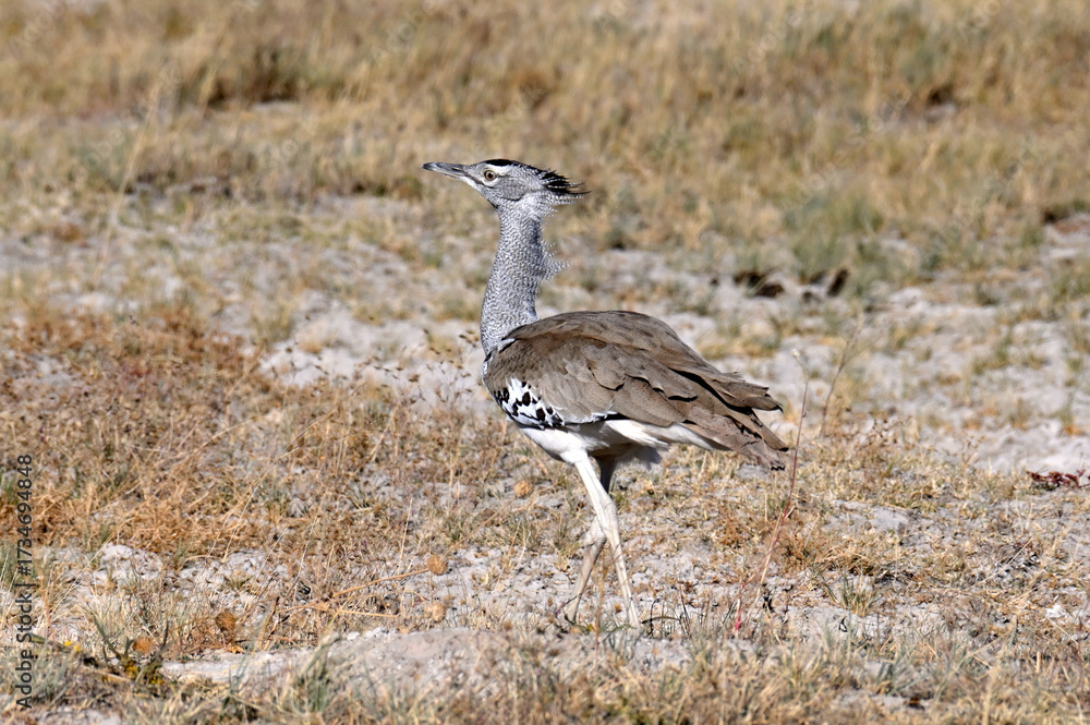 A Kori Bustard Ardeotis kori walking through grass in Northern Namibia