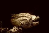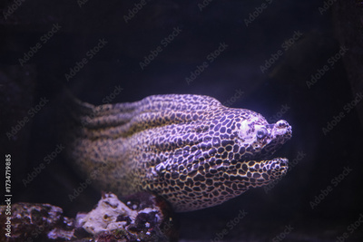 Moray Eel. Gymnothorax miliaris. Fish underwater in the aquarium.