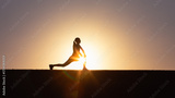 Young woman stretching exercising at sunrise. flexibility, body health fitness, exercises, healthy active lifestyle concept