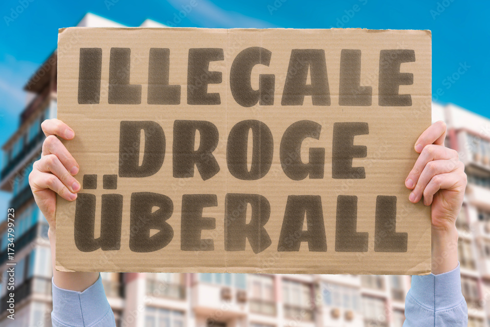 “Illegale Droge Überall” Illegal substances spread unchecked through the streets. DRUGS. ILLEGAL. TRAFFIC. CRIME. CITY. PROBLEM.