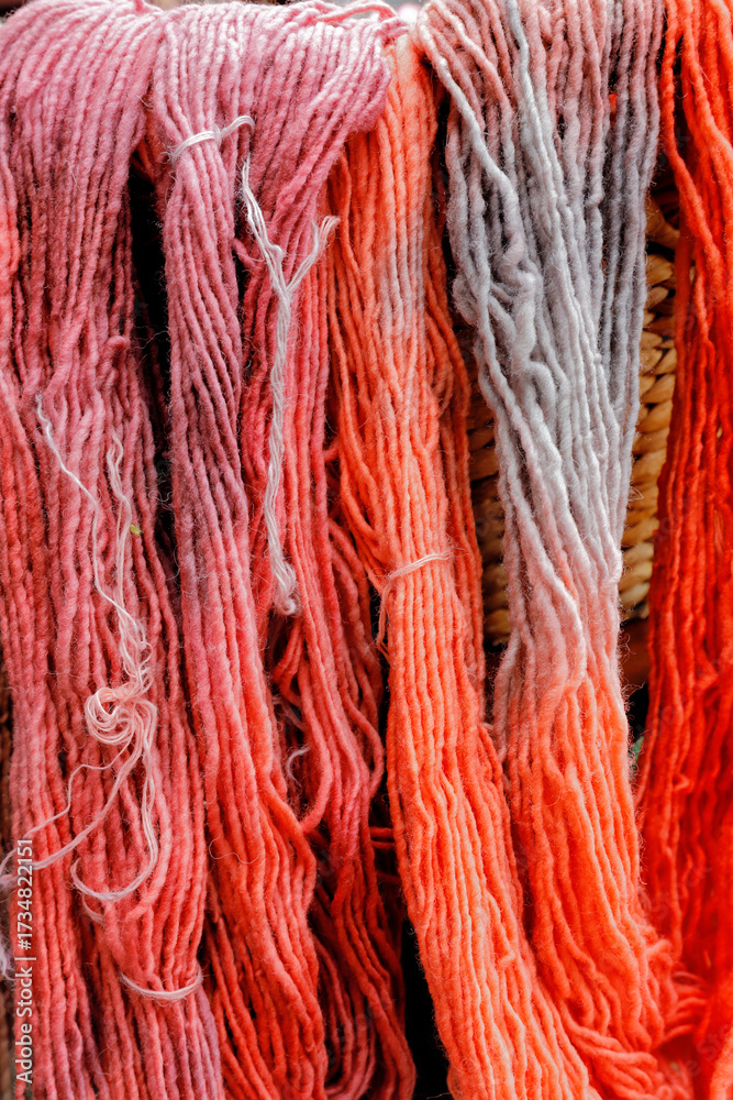 Bunte handgesponnene Wolle auf einem Handwerkermarkt