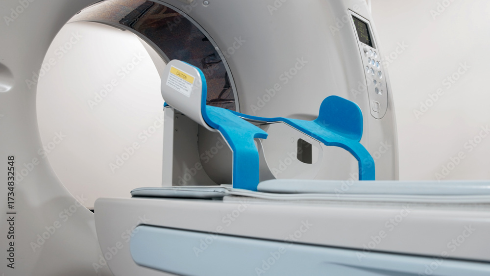 Modern CT scanner or MRI machine in a hospital radiology center. Diagnostic equipment in a medical lab.