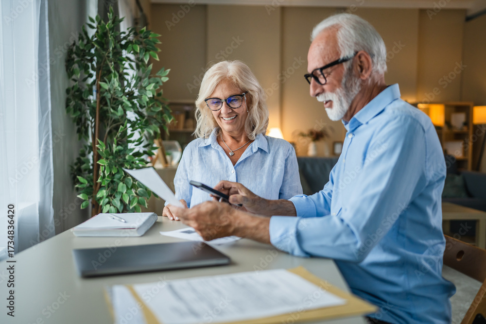 Senior couple making online payment using smart phone qr code