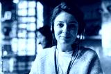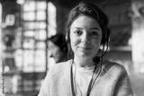 Portrait of cheerful call center employee in office helping customers by answering questions, solving their issue. Joyous customer support worker using headset mic to talk with clients