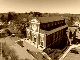 Annunciation of the Lord Catholic Church aerial view at 31 1st Street in Weir Village, city of Taunton, Bristol County, Massachusetts MA, USA.