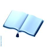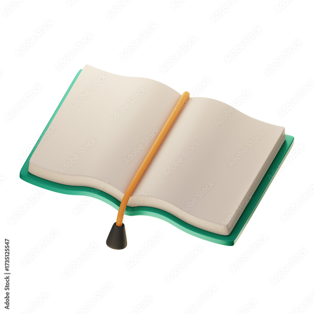 Opened Beige Book with Green Cover and Orange Bookmark on Transparent Background