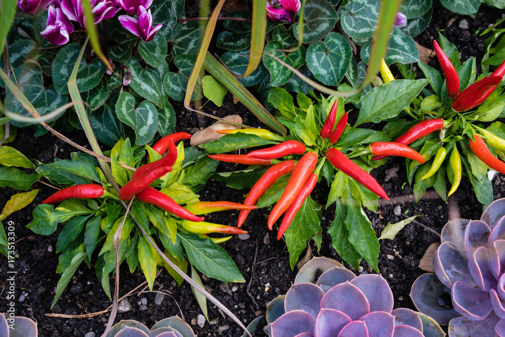 chili paprika and violet plant close up industrial agriculture bouquet design