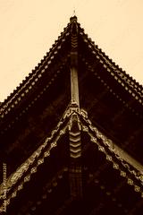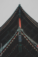 Intricate, aged wooden details of a traditional Beijing building showcase ornate carvings and a symmetrical, repetitive geometric pattern against a muted, matte surface.