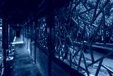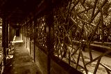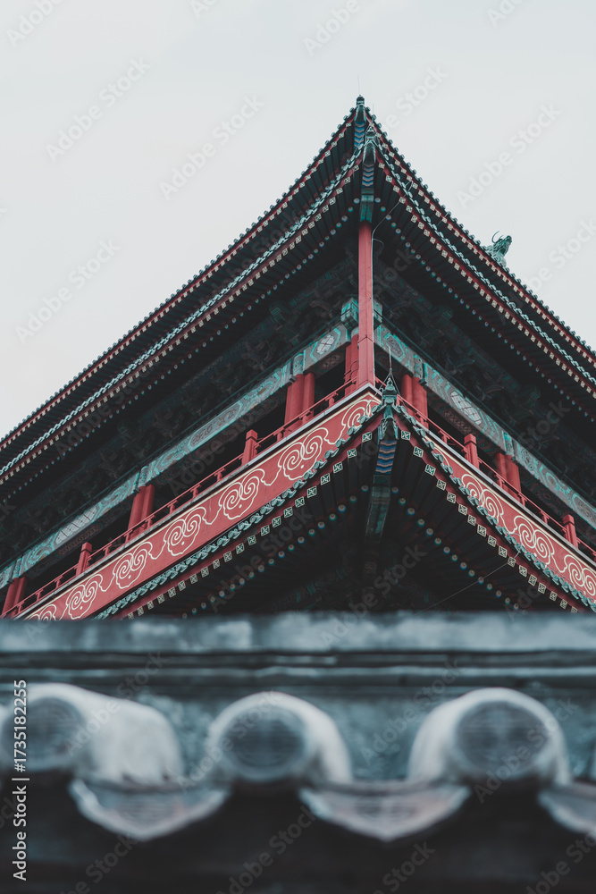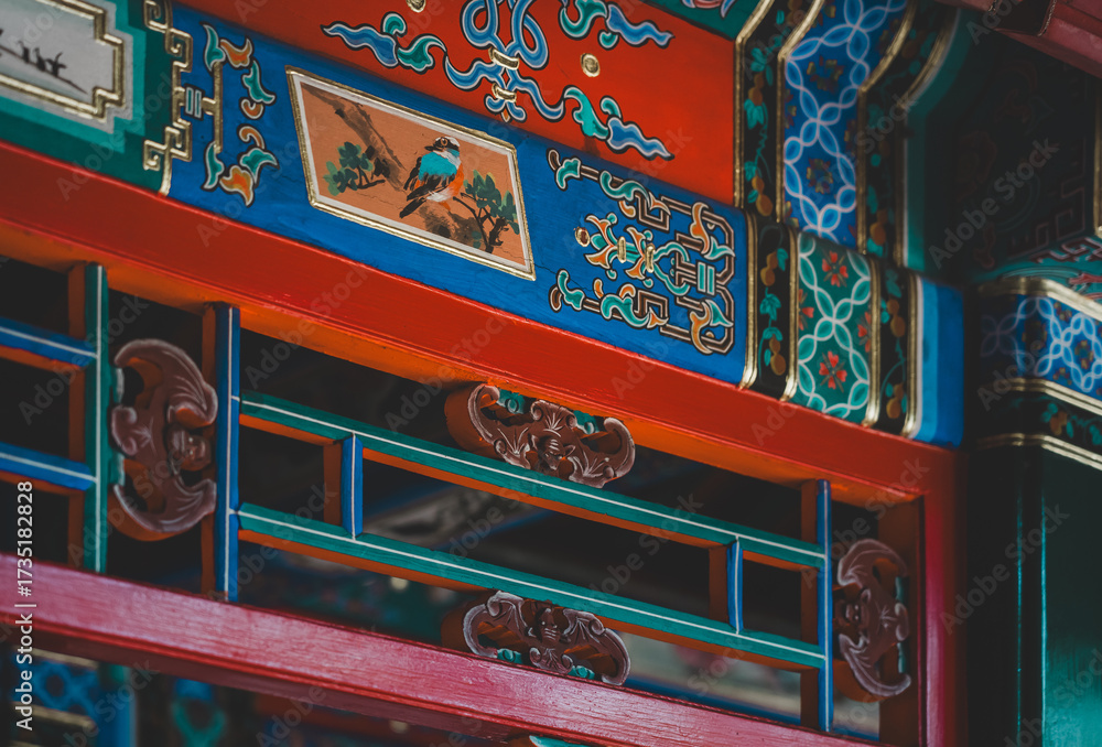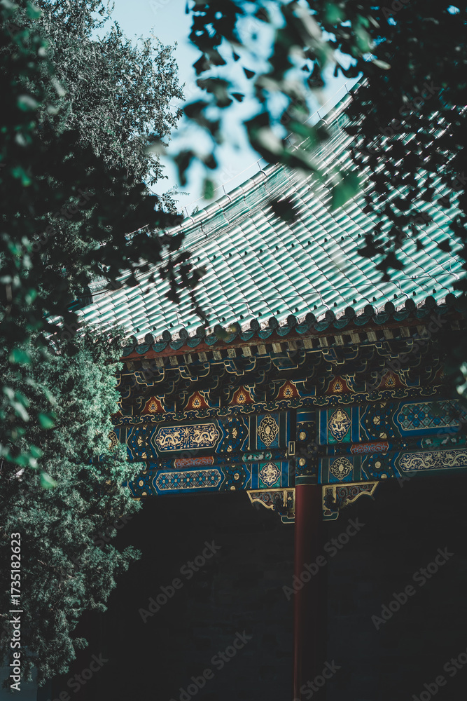 Intricate, aged wooden details of a Beijing structure display ornate, repeating geometric patterns against a backdrop of aged stone and muted, earthy tones.