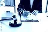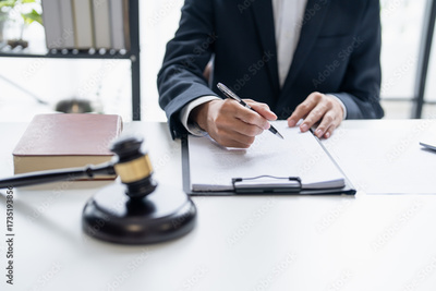 Lawyer Businessman Working with Lawbook and Gavel in Office or Courtroom for Justice Concept