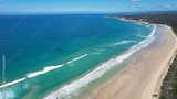 Clean ocean waves breaking on a white sand beach with turquoise emerald colored water