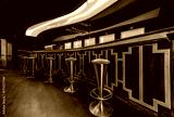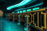 Stools and bar counter in coffe bar interior