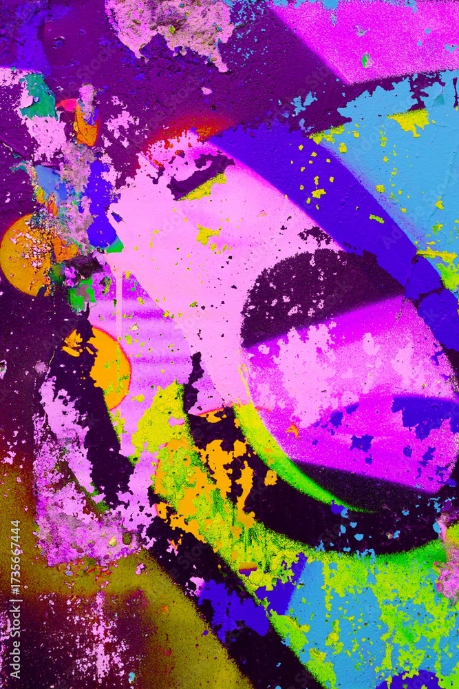 Vibrant abstract graffiti texture in neon pink, green, purple. 90s, Y2K style, fluorescent glow, bold street art. Urban backgrounds, digital art, modern 2000s, Y2K creative visuals.