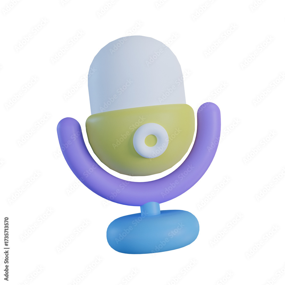 Stylized Microphone 3D Render in Light Blue Yellow and Purple Against Transparent Backdrop for Audio Recording
